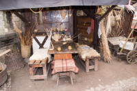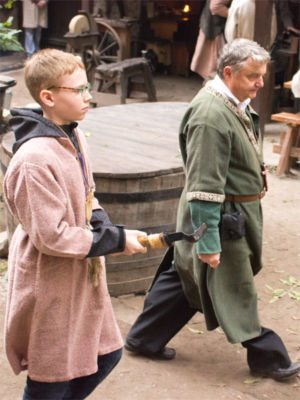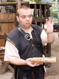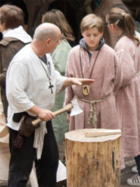 Gefertigt werden Holznägel, Gebrauchsgegenstände für den Alltag, Spielzeuge. Der Tischler und seine Knechte sind beim Aufbau der Burggebäude tätig und reparieren die hölzernen Arbeitsmittel und das Mobiliar der Handwerker.