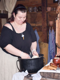 Im Torhaus werden möglichst nach historischen Vorlagen und unter Ausschluss von erst in der frühen Neuzeit verwendeter Lebensmittel die Früh- und Mittagsmahlzeiten zubereitet, die gegen Leistungen der Handwerker getauscht oder veräußert werden.