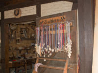 Die Arbeit in der Tischlerei ist sehr vielfältig. Erklärt werden unterschiedliche Holzarten und deren Verwendung, vermittelt wird der Gebrauch historischer Bearbeitungswerkzeuge wie Hohl- oder Lochbeitel, Hobel, einschließlich der Sägen und Bohrer.